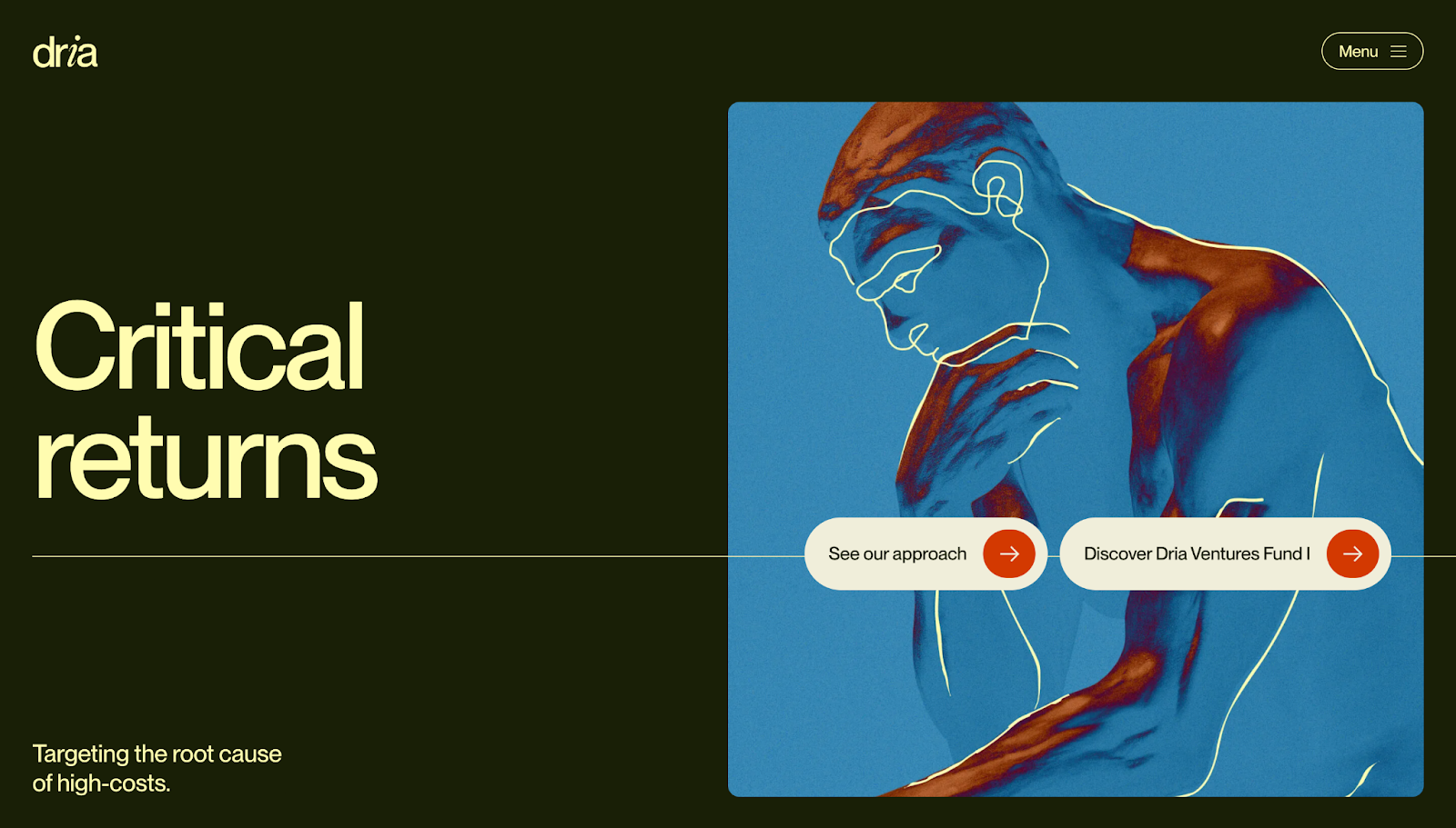 Dria Ventures’ website, designed by Paper Tiger, uses microinteractions to make a dense, thesis-driven story easier to follow. In the hamburger-style menu — tucked away in the top-right corner — the numbered navigation and anchor links respond on hover, showing visitors exactly where they’re headed.
