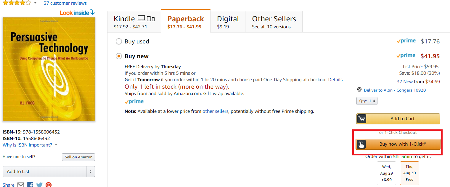 Amazon’s 1-Click makes it simple for consumers to make a purchase, leading people to buy more.