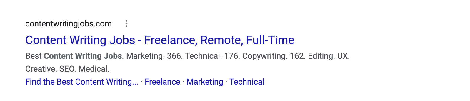 The title is simple and on point. I state the main value proposition of my website (content writing jobs) and elaborate on job types.