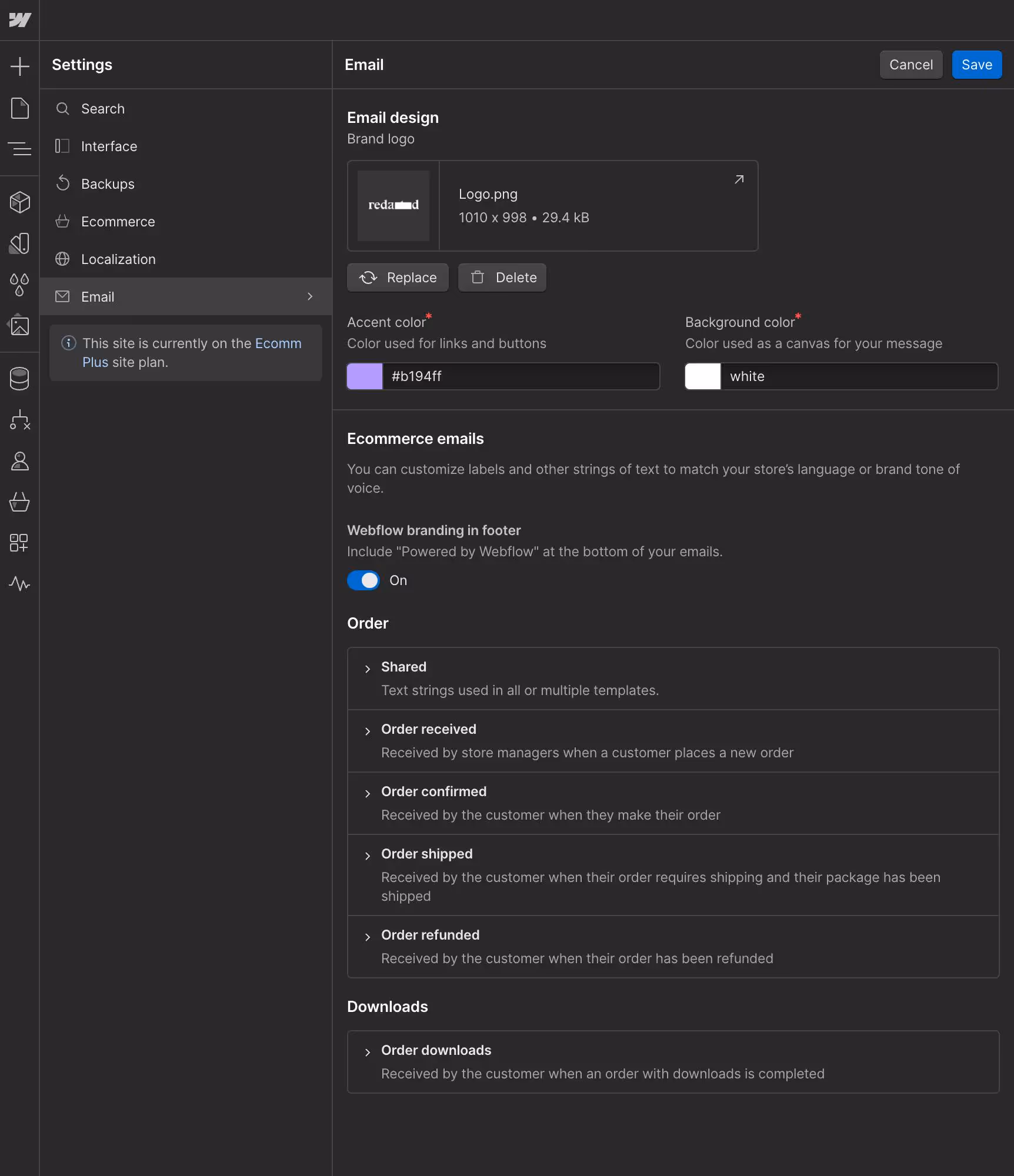 Upload your own logo and tweak colors to keep your receipt and order notification emails on brand.