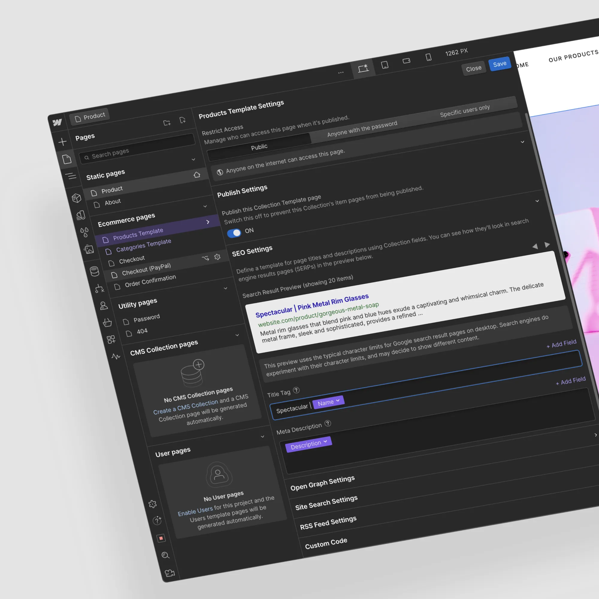 With dynamic embeds, you can automatically generate search-friendly meta titles and descriptions from product page names, blog post titles, case studies, and more.