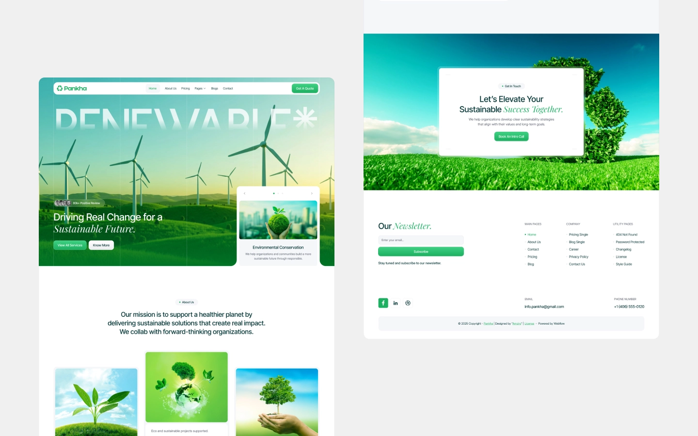 Pankha is a sustainable Webflow template built for eco-friendly organizations, green startups, and environmental initiatives. Fully responsive and powered by CMS and E-commerce, it’s ideal for professionals committed to sustainability.