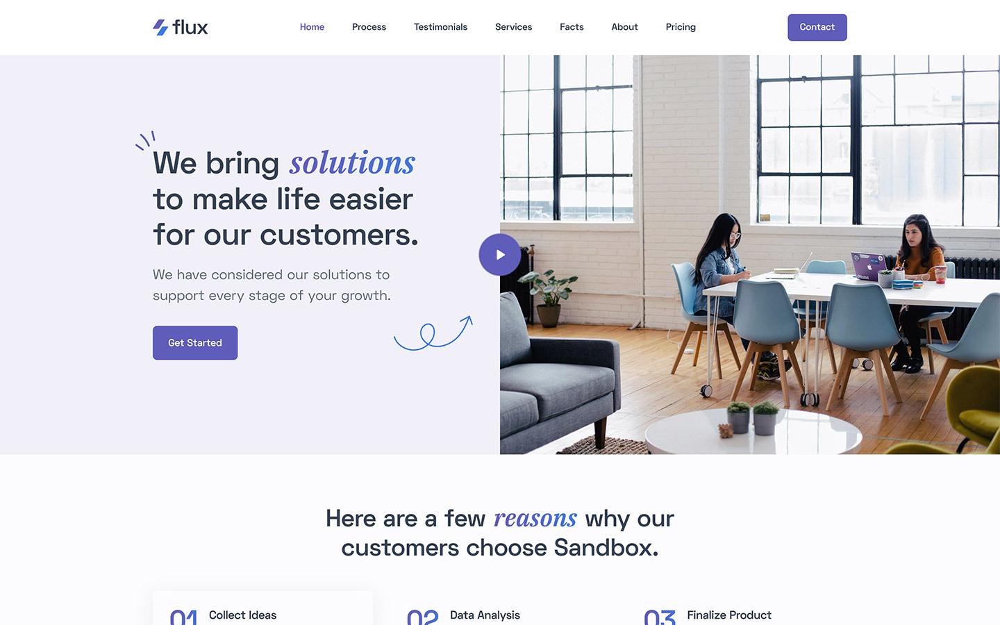 Flux is a modern and dynamic landing page template that has been designed to help startups and small businesses create an online presence that stands out.