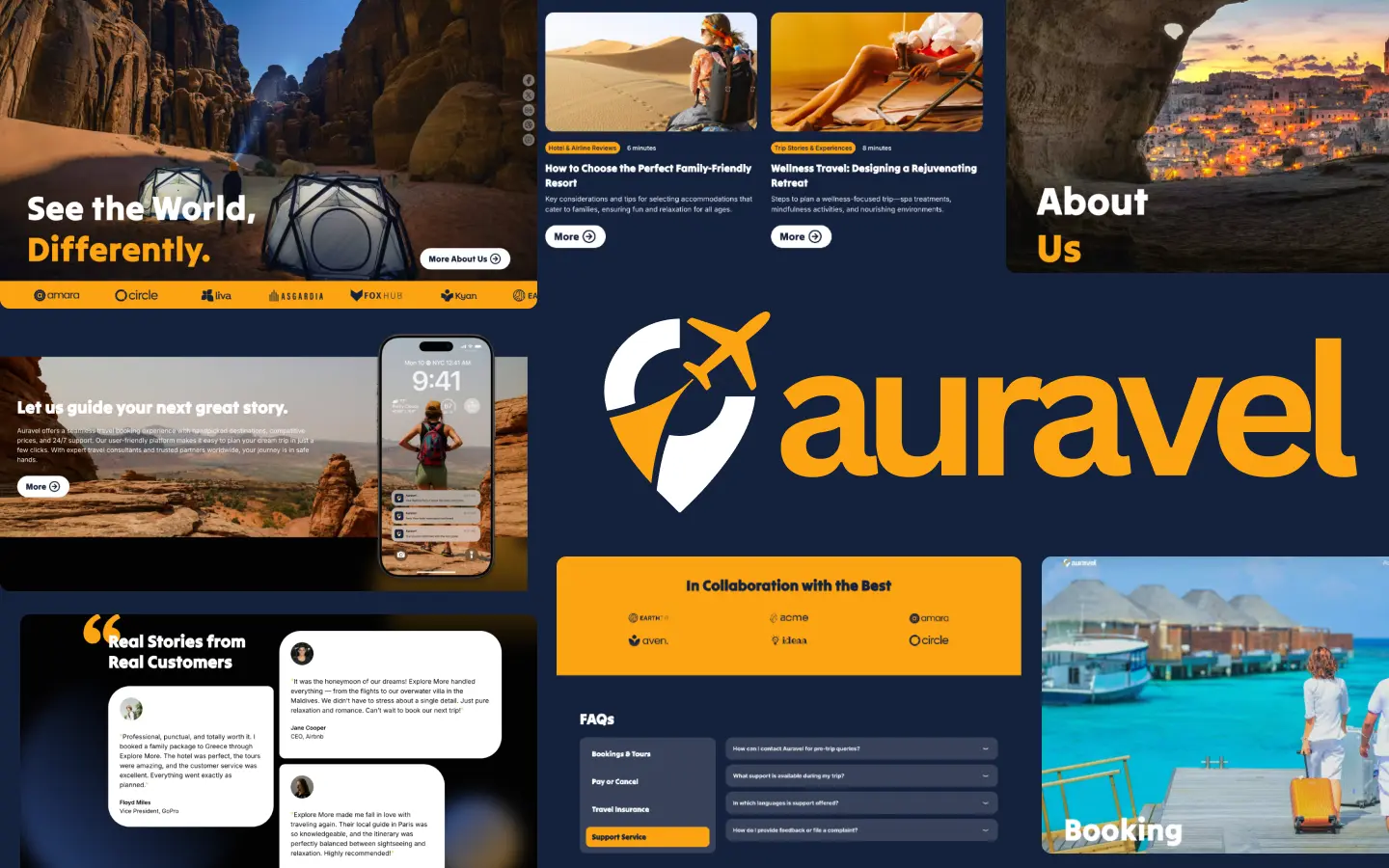 Auravel is a sleek travel booking Webflow template with responsive design, interactive booking forms, customizable components, subtle animations, retina-ready web fonts, and a modern, lightweight style to showcase tours and accommodations.