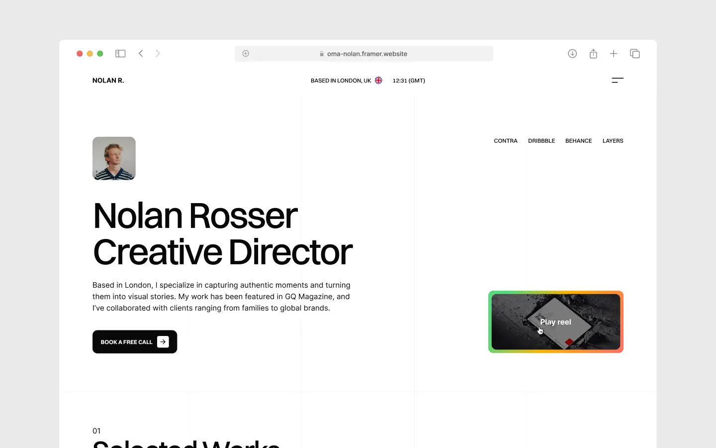 NolanRosser is a minimal, aesthetic portfolio template for product designers and creative directors. Features project showcases, blog pages, and a clean, modern layout designed for maximum impact.
