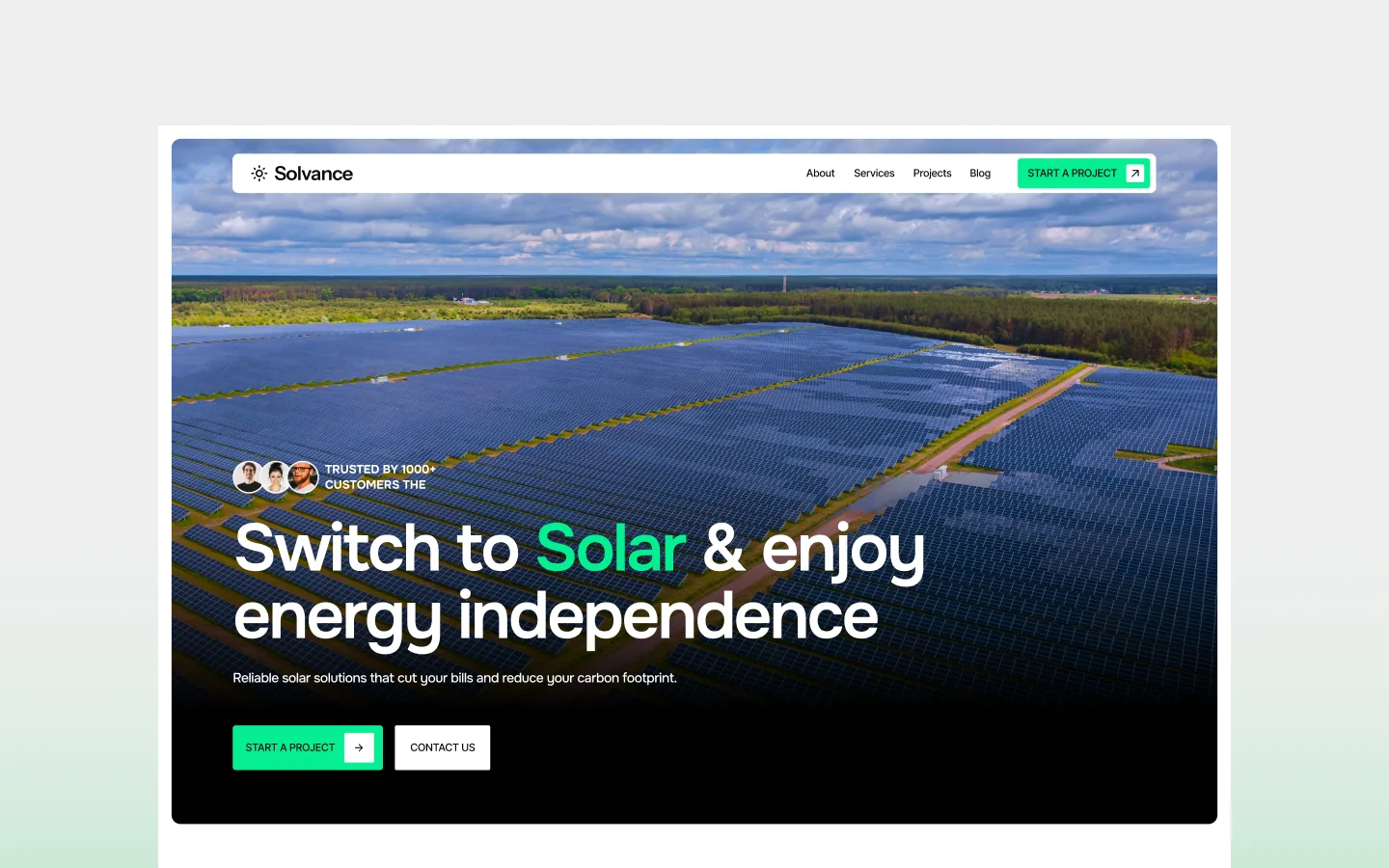 Solvance is a clean, modern Webflow template for solar energy companies. With service pages, case studies, blog, and contact forms, it's built to generate leads and promote clean energy adoption.