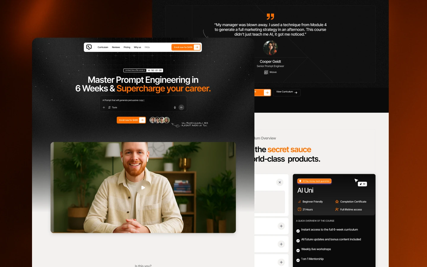 A high-converting AI course landing page template. Showcase your curriculum, build trust with testimonials, and drive sign-ups with clear CTAs—perfect for educators selling AI courses online.
