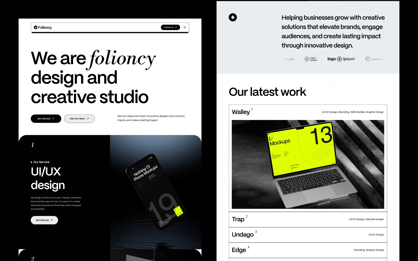 Folioncy is a sleek Webflow template with a minimalist design, bold typography, and a black-and-white color scheme. Perfect for creative agencies, it combines style and functionality to simplify website redesigns.