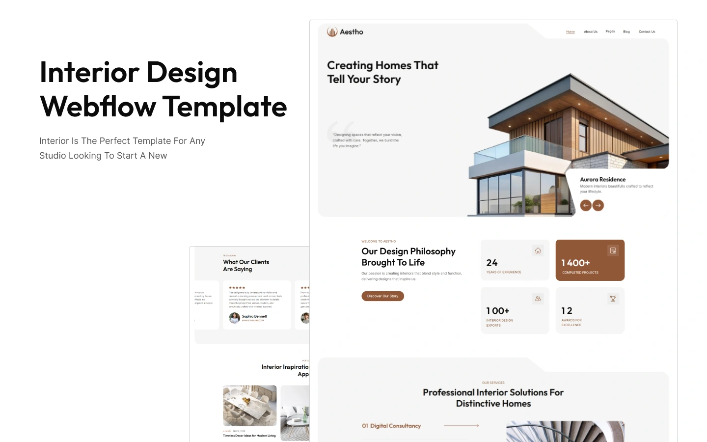 Aestho is a contemporary Webflow template crafted for interior design studios and creative professionals. With its elegant and responsive layout, you can showcase your portfolio, highlight design services, and share inspiring blog content. Aestho features customizable sections, project galleries, and seamless navigation for a premium user experience. Perfect for designers who value beauty and detail, Aestho combines aesthetics with performance to elevate your digital brand.