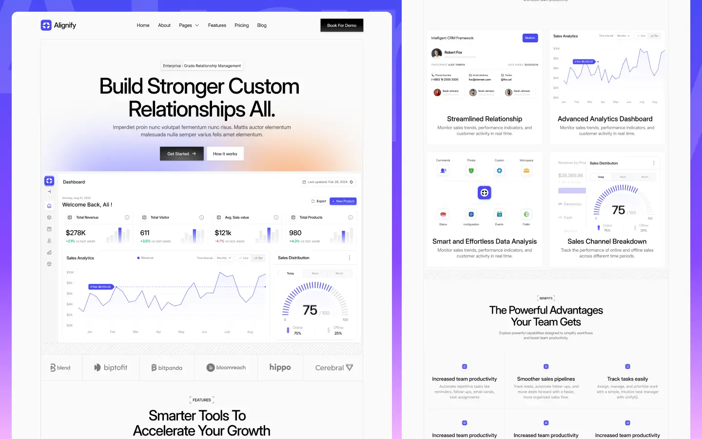 Alignify is ideal for launching SaaS products, startups, agency websites, or client projects with a professional, modern, and conversion-driven design.