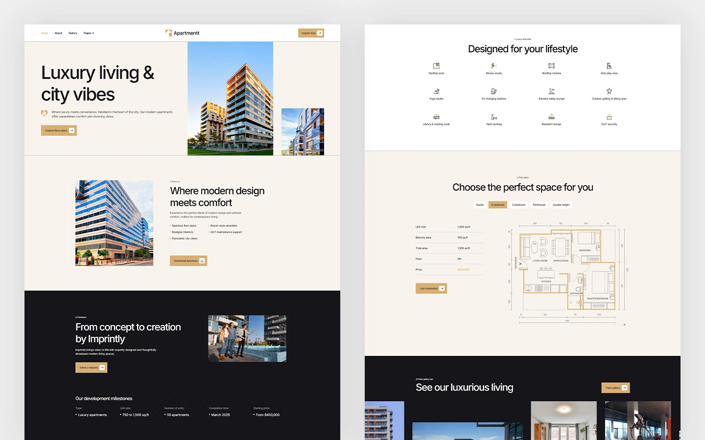 Apartmentt is purpose-built for single-property apartments, providing all the tools and features needed to showcase your property professionally. Its modern, fast-loading, and customizable layouts are tailored to attract potential buyers or tenants.