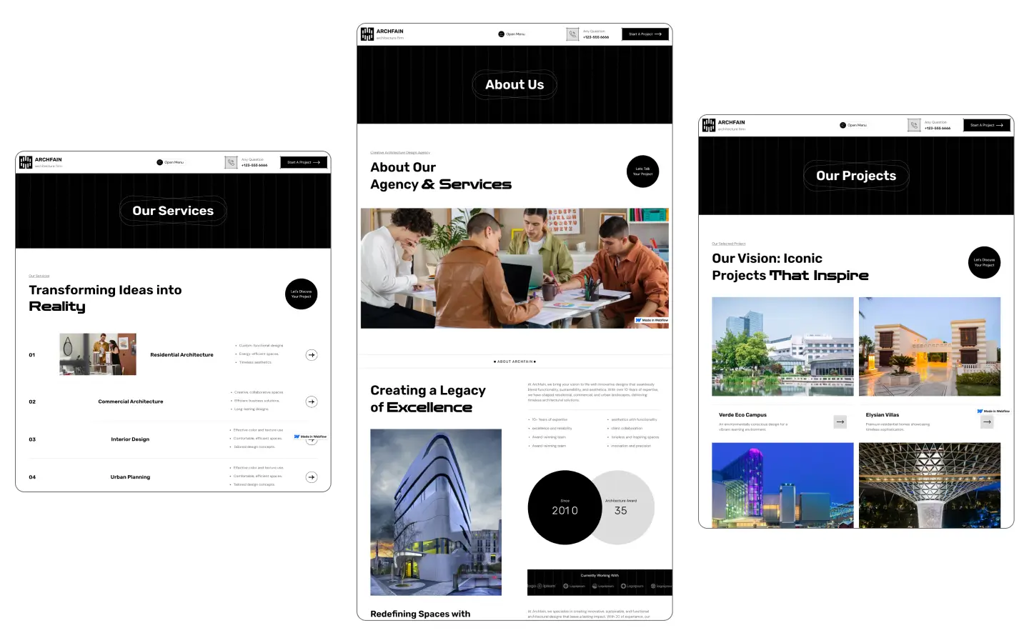 "Archfain" isn’t just a template; it’s your canvas for building a standout online presence. Fully customizable, it empowers you to align every detail with your brand’s unique style—whether you’re showcasing luxurious homes, commercial spaces, or innovative architectural projects.