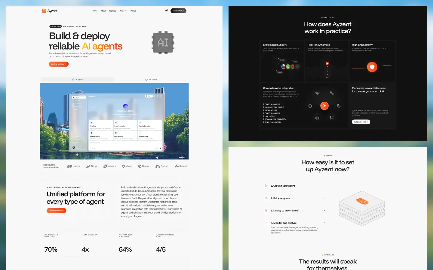Ayzent is a powerful and modern Webflow template built for AI startups, SaaS platforms, tech companies, and digital innovators who want to present their products with clarity and confidence. Designed to highlight artificial intelligence solutions, automation tools, and data-driven services, Ayzent combines a clean interface with a futuristic feel. With smooth publishing, flexible layouts, and scalable CMS structure, it helps you grow alongside your product and business.