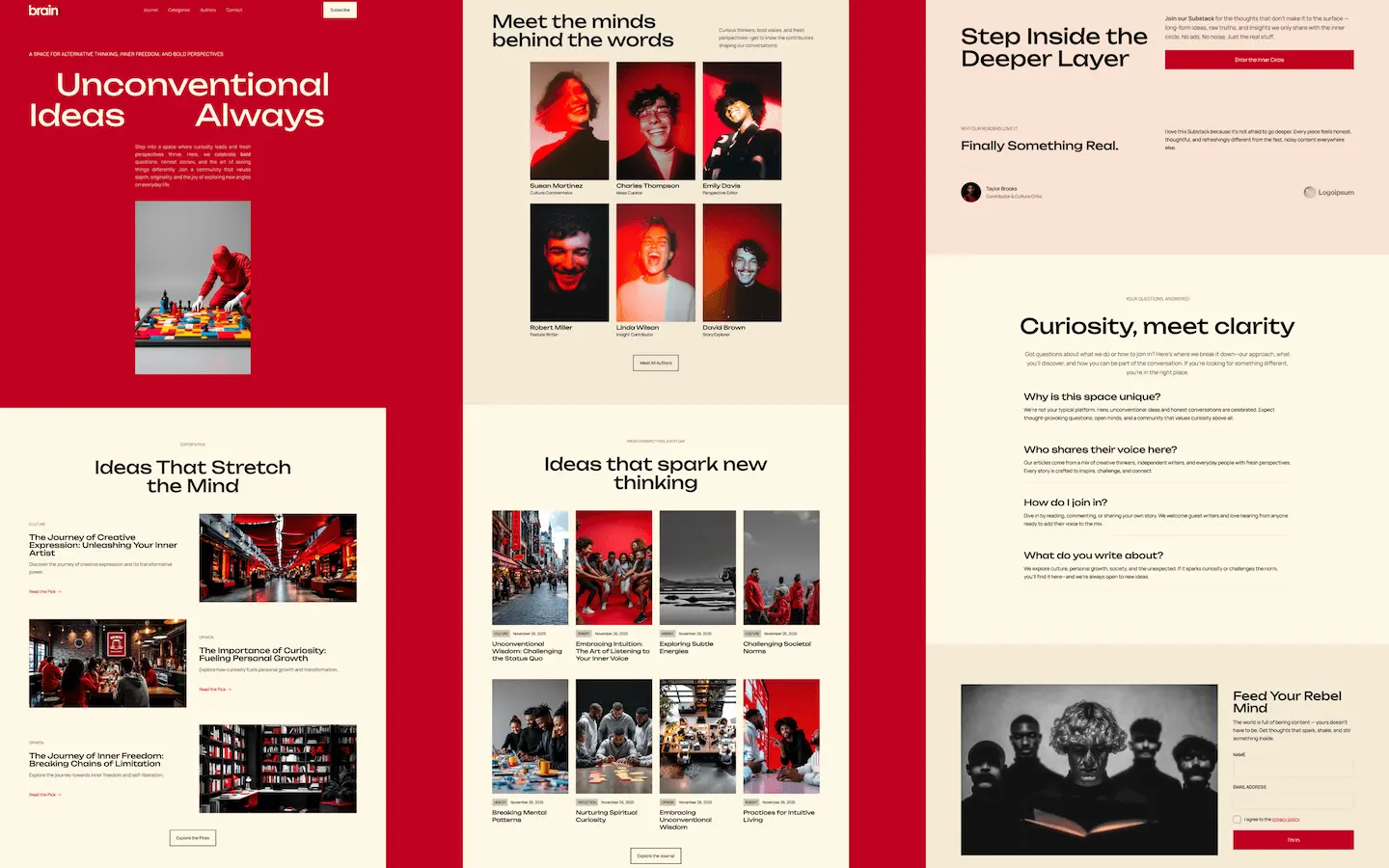 BrainGlitch is a bold Webflow HTML template built for modern creators, writers, and digital storytellers. Designed for lifestyle blogs, online magazines, and independent media projects, it blends striking visuals with powerful content structure to make every story impossible to ignore.