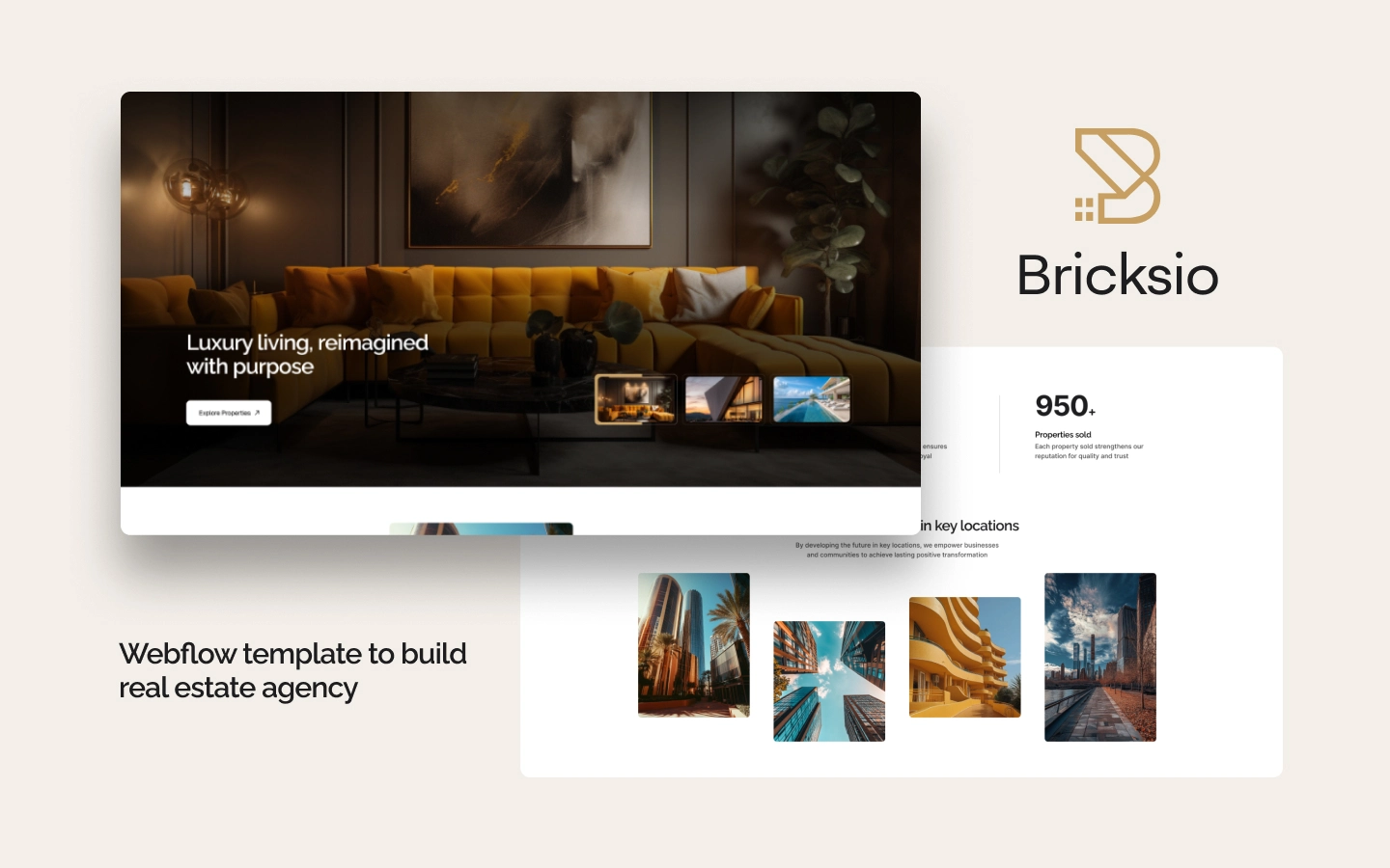 Bricksio is a high-end, elegant Webflow template specifically designed for Real Estate agencies, brokers, and developers. It's built to showcase luxury properties and investments with exceptional clarity, style, and a focus on lead generation.