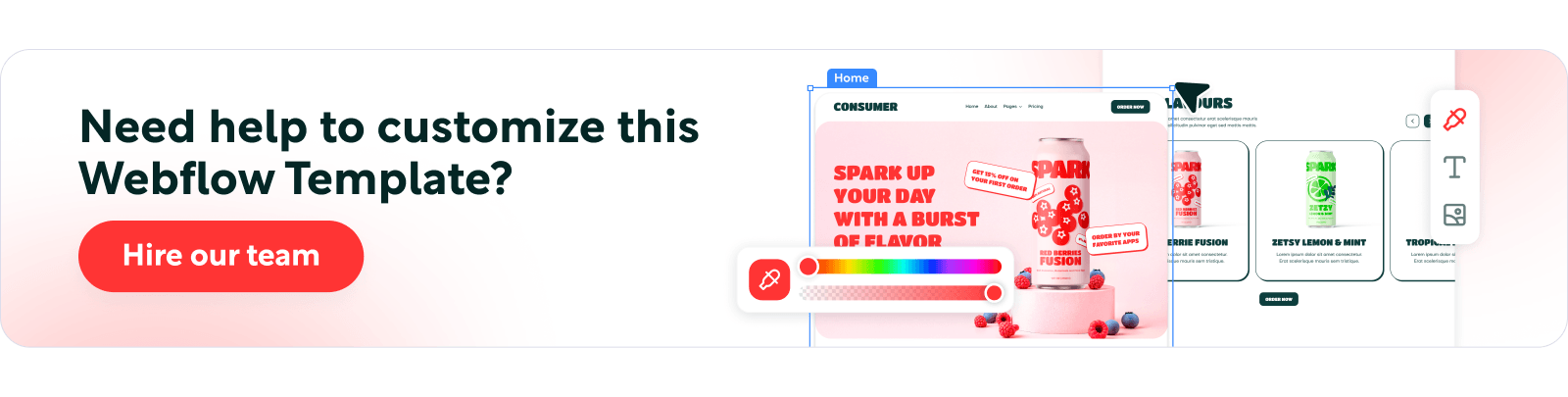 Consumer Webflow Template was developed to be very easily editable and customizable, however, if you ever have any issues, find any bugs, or just want to reach out to say hi, our support team is always available at support@brixtemplates.com - We will be more than happy to help you!