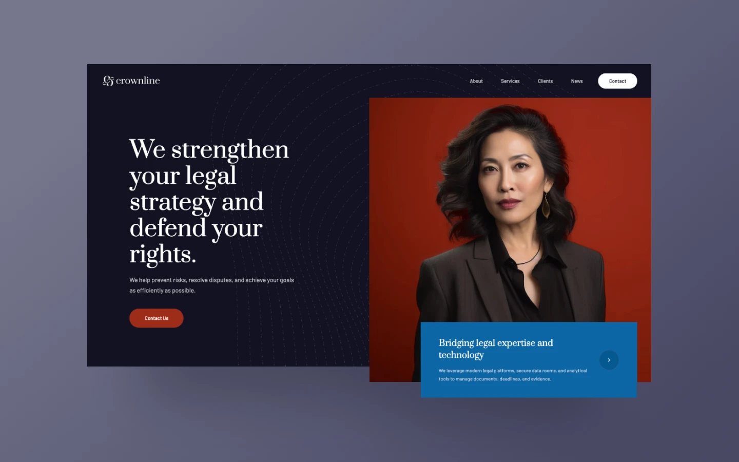Crownline Webflow template is highly suitable for creating websites for law firms, attorney profiles, public services, non-profit organizations, local services, businesses, and other companies.