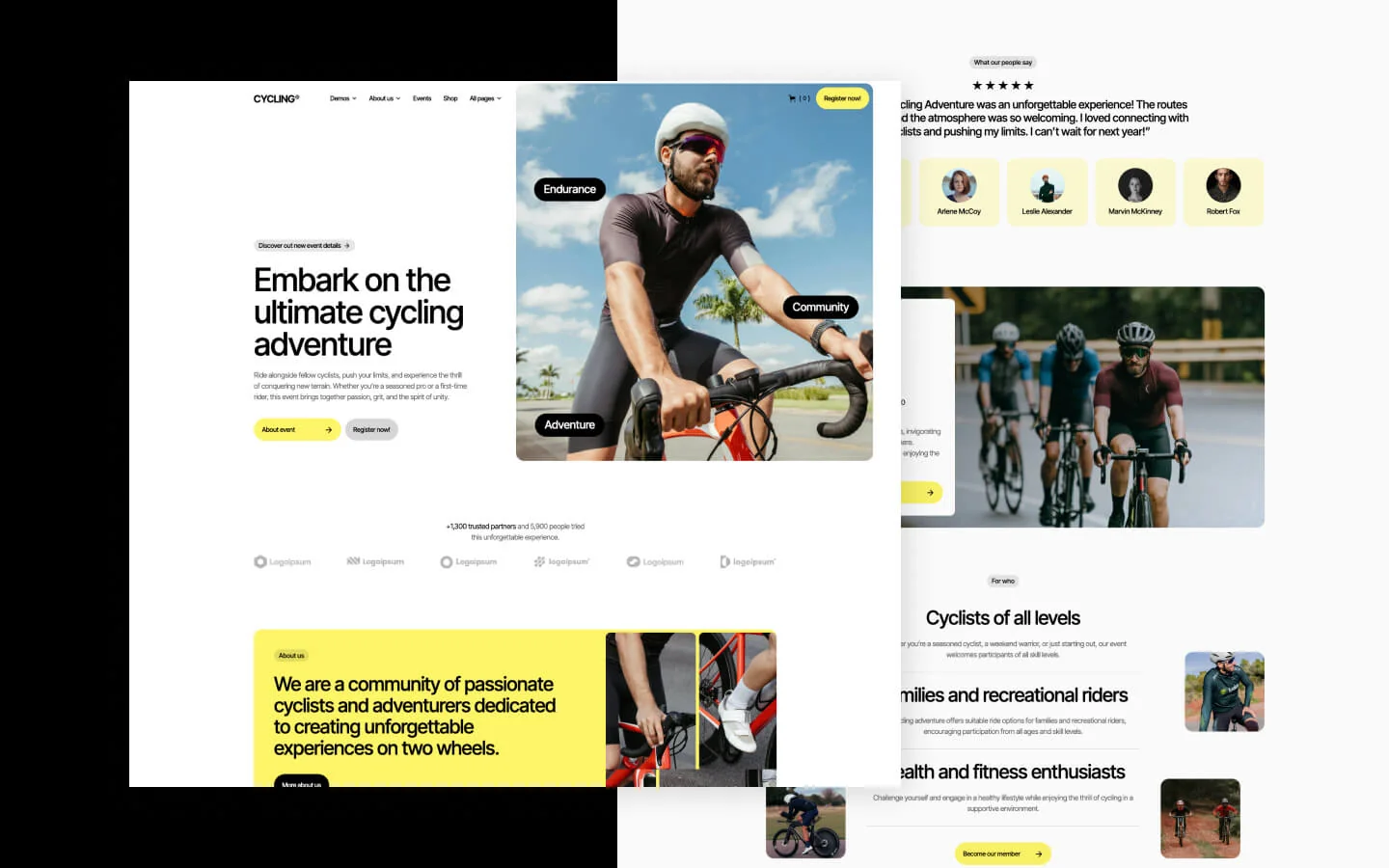 Cycling 128 is a Webflow template that can be used for Cycling, Cycling Club, Cycling Sport Club, Sports, Sports Club, Cycling Event, Bicycle, Bike, Bike Club websites.