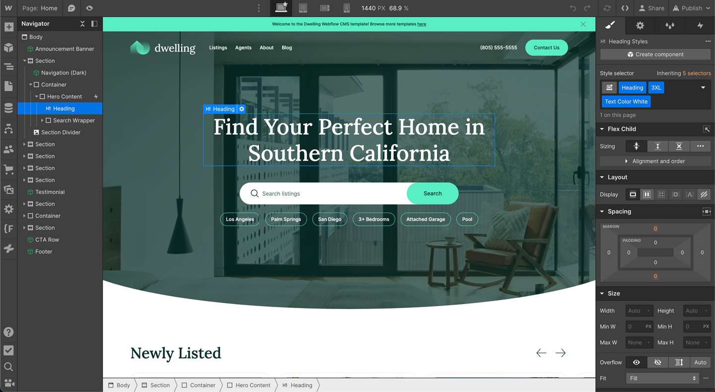 Dwelling is a clean and modern CMS website template for real estate businesses that need a beautiful website for their clients that helps generate new leads. With 9 unique pages and 20+ pre-built components, this template has everything you need.