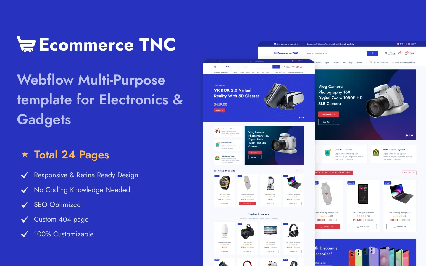 The Ecommerce TNC Webflow template is brought to you by ThemeNcode, a trusted name in Webflow templates. Explore our collection of Webflow templates designed to elevate your online presence and grow your e-commerce business.