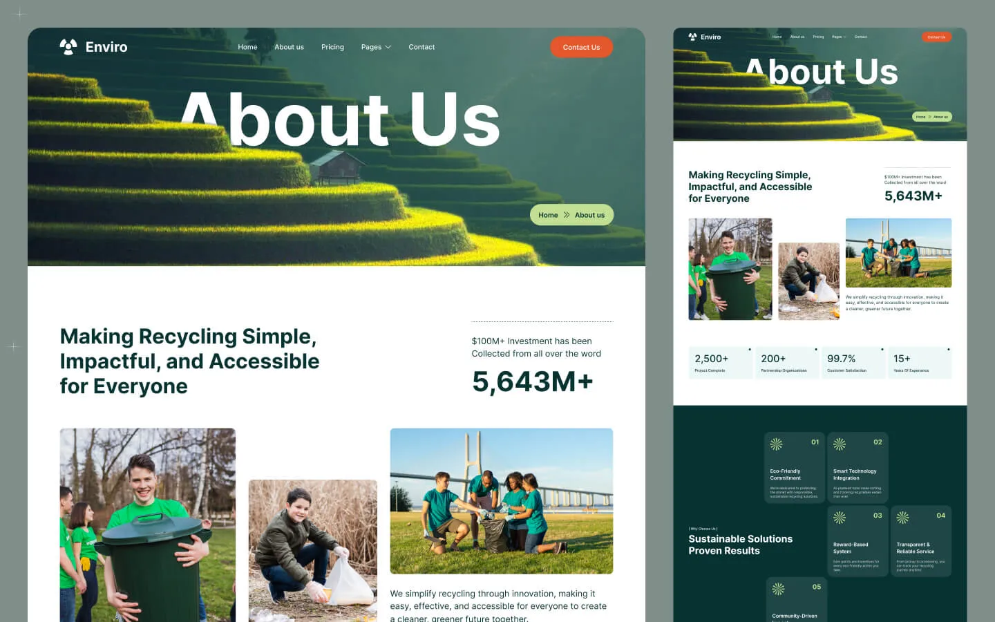 Enviro is a modern Webflow template designed for environmental organizations, eco brands, and sustainability projects.