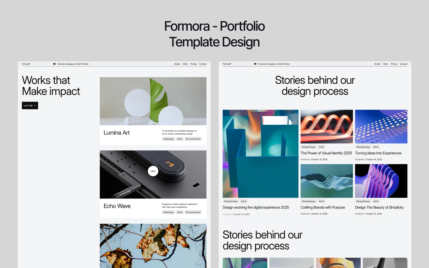 Whether you’re a freelance designer, creative director, or a full-scale creative agency, Formora provides the structure and freedom needed to present work, tell your story, and attract meaningful opportunities.
