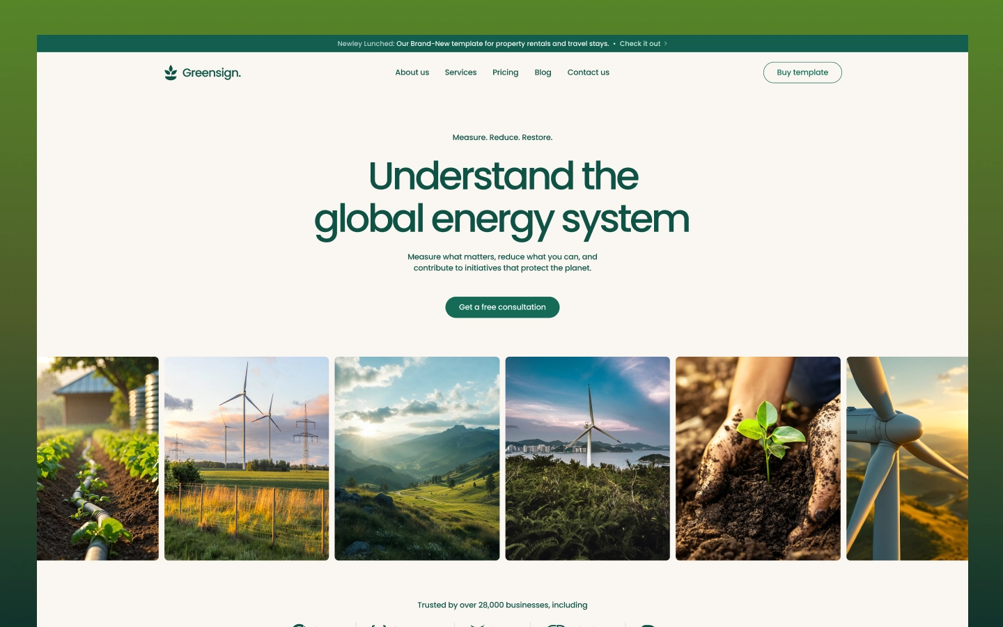 Greensign is a sustainability and environment Webflow template for renewable energy companies, ESG consultants, and climate-tech startups. Includes services, blog, pricing, and contact pages—built for impact-driven brands ready to launch and grow.