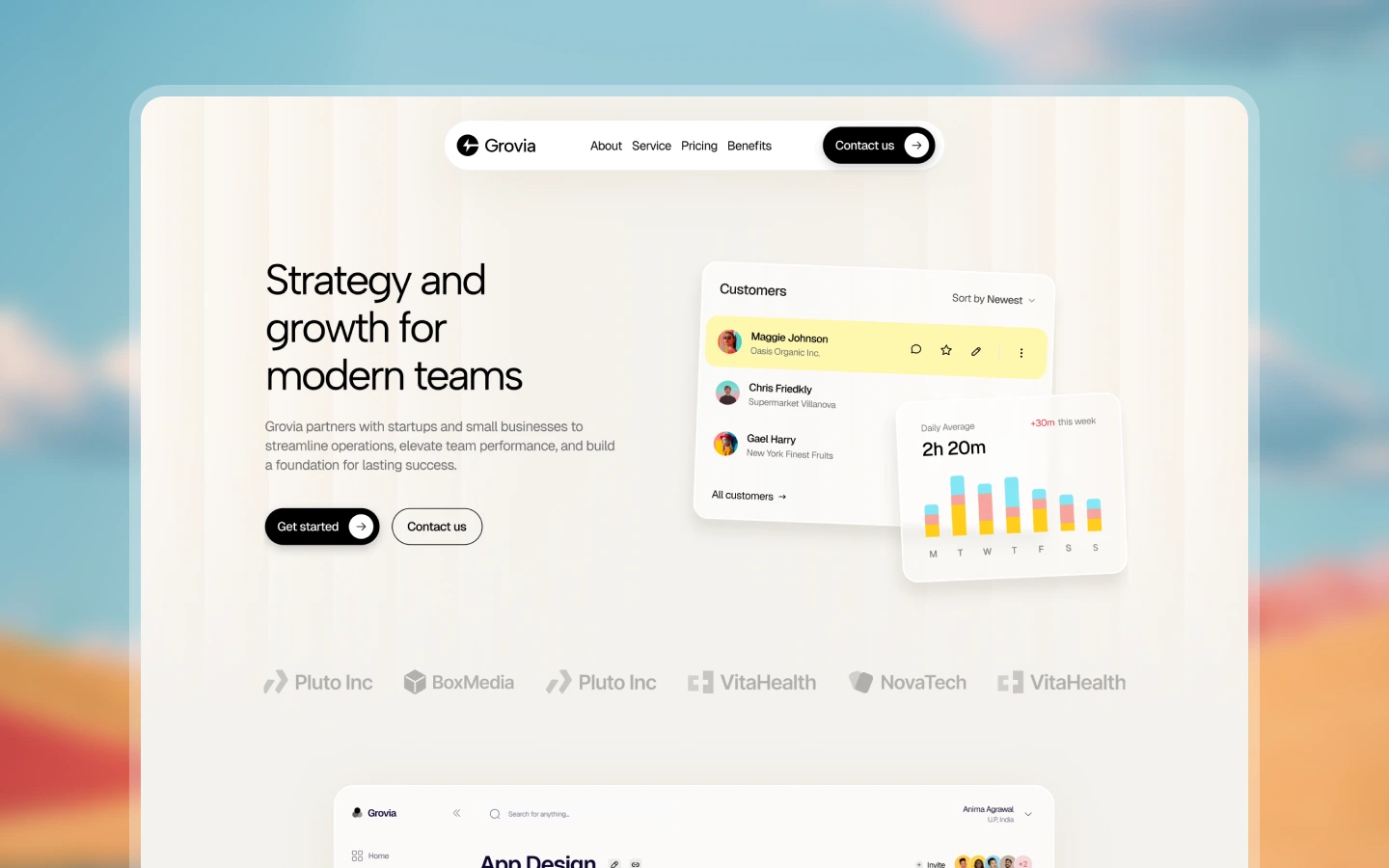 Grovia is a SaaS and business template for startups and growing companies. It includes sections for features, pricing, case studies, integrations, and more, helping you present your brand and drive growth with clarity.