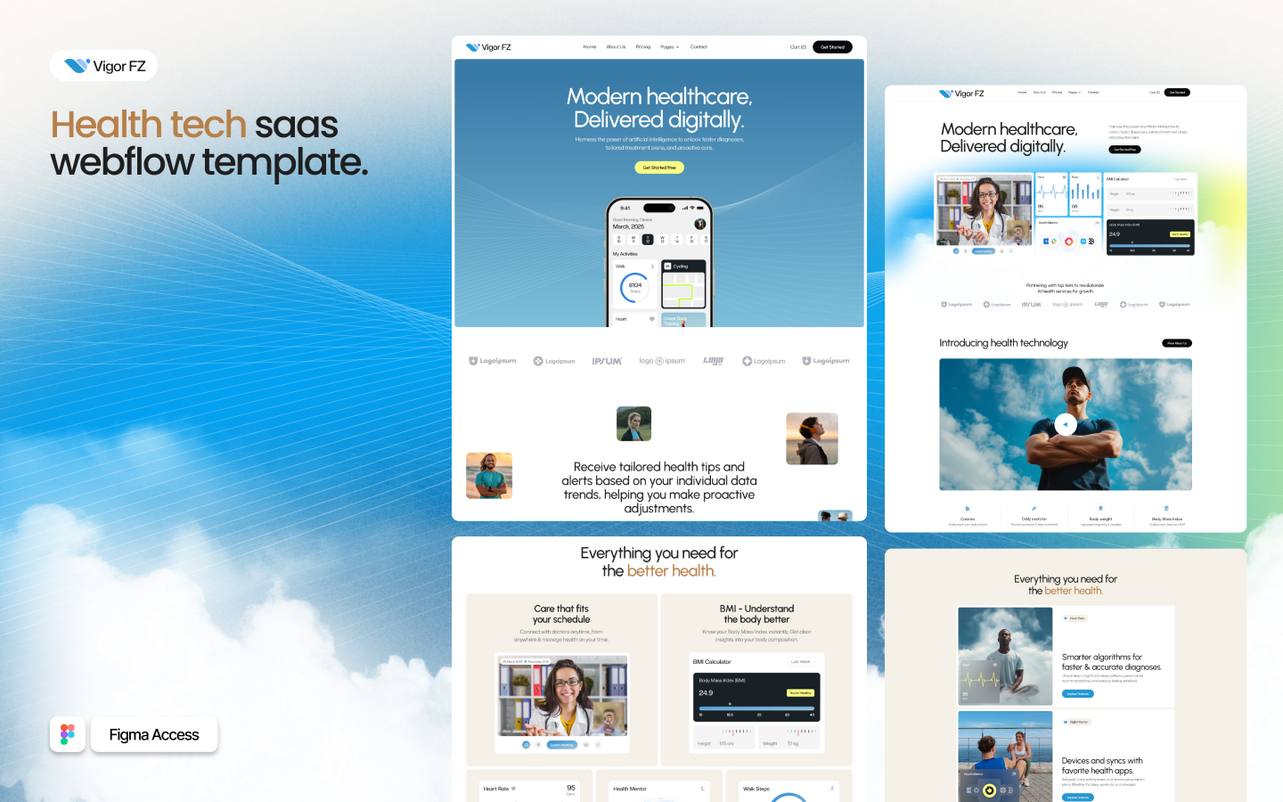 Vigor FZ is a clean Webflow template built for health tech startups and medical SaaS platforms. Designed with clarity and professionalism in mind, it helps you build trust, showcase features, and convert visitors into users effortlessly.