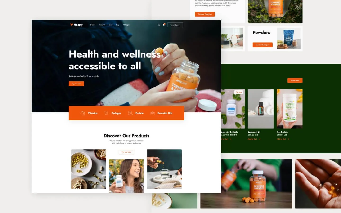Hearty 128 is a professional Health and Wellness Website Webflow Template for vitamin store, pharmacy, health and wellness, healthy lifestyle, healthcare, sports nutrition, protein, supplements, dietitian, nutrition health websites.