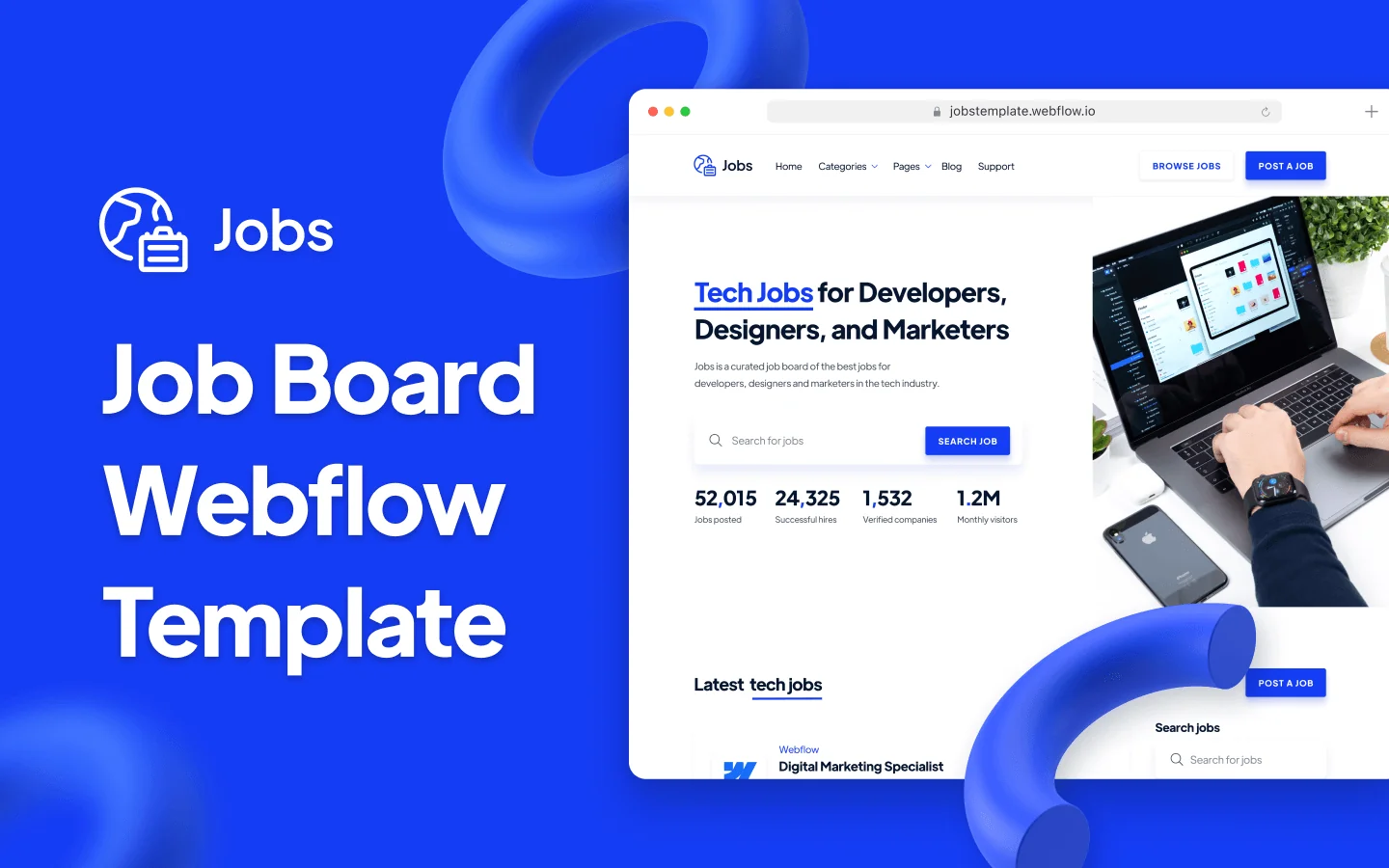 Are you looking to create you own online Job Board? Search no more! Presenting Jobs, the premium Job Board Webflow Template.