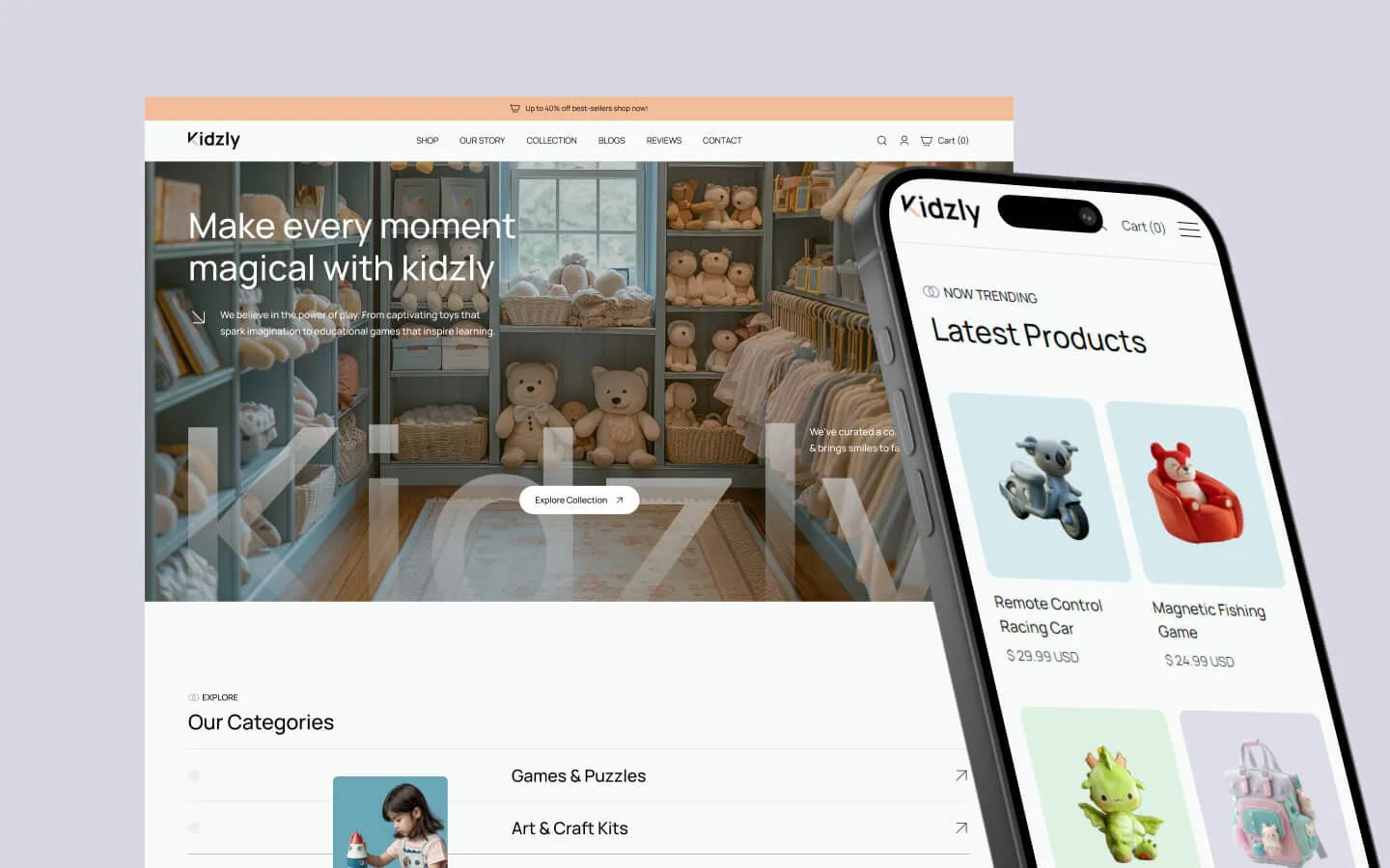 The Kidzly Webflow template is perfect for all kinds of online toy stores. It's ideal for selling children's toys, games, and educational products. Whether you’re running a toy shop, an online store for kids' activities, or a boutique specializing in unique gifts, this template has you covered.
