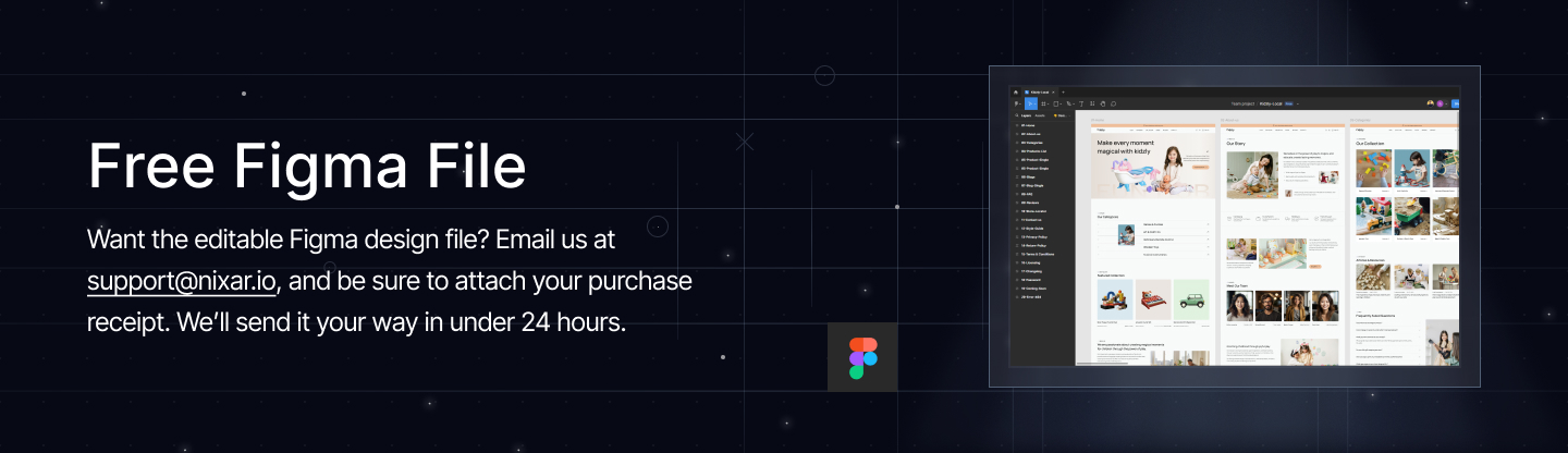 You can email us at support@nixar.io after your purchase (attaching your order receipt), and we will be more than happy to send you the Figma design source file if you want it.