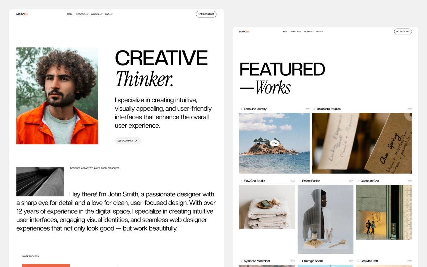 Marcen - for your creative ideas. Meet our new portfolio template, designed to boost your website's conversion rates and build trust among your clients. It's ideal for freelancers, designers, or anyone looking to build a portfolio website.