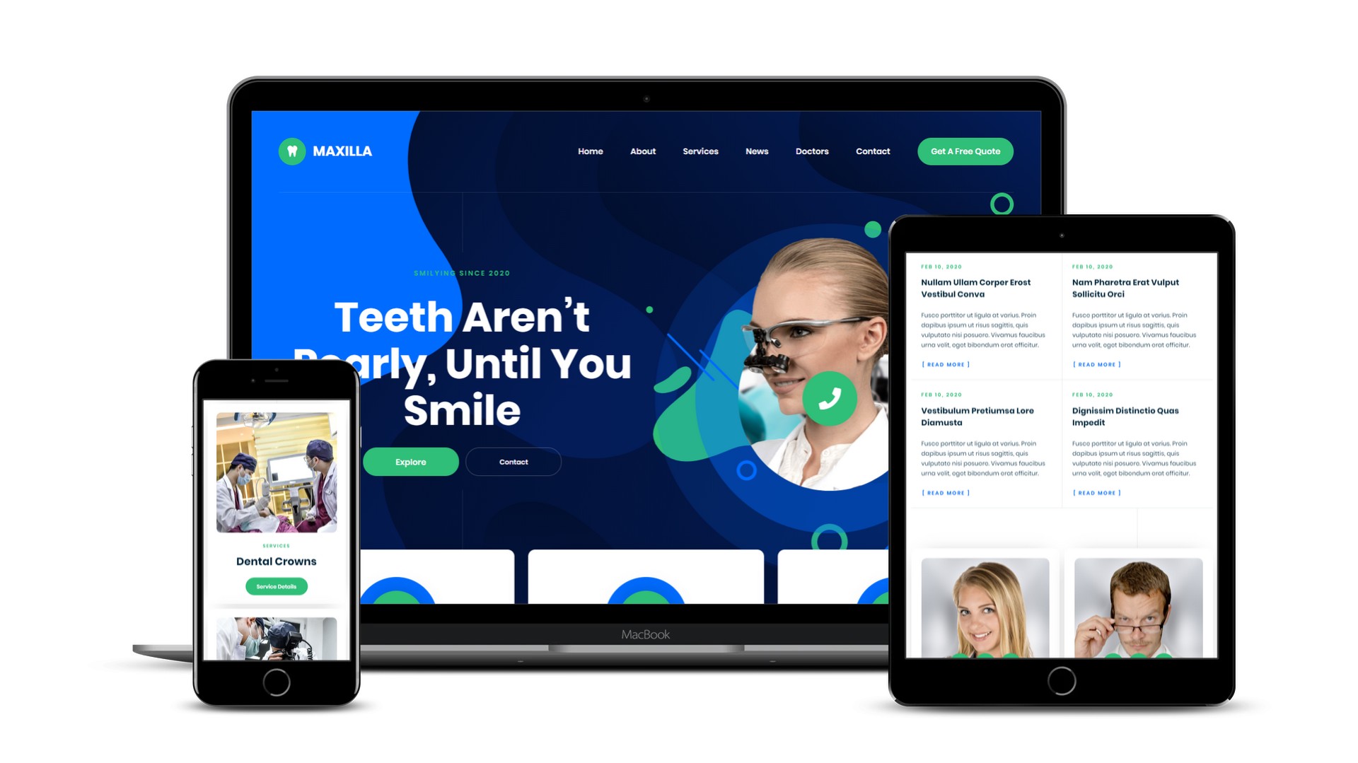 Meet Maxilla - The perfect Webflow template to get your newest dentist cabint or dental clinic website up and running in no time. Maxilla presents a confident, modern but welcoming look for your business. Responsive design, spacious typography and vibrant color tones combine to form an engaging, well-rounded user experience, on any device.