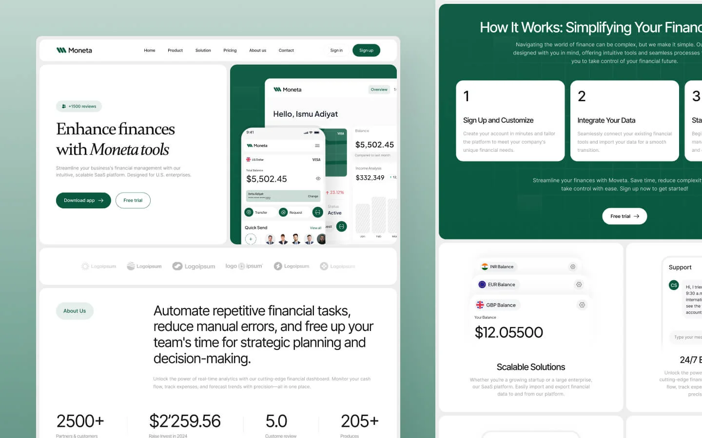 Fully responsive and user-friendly, Moneta ensures your website looks amazing on all devices, from desktops to smartphones. It also features advanced functionalities like subtle animations, SEO optimization, and a content management system (CMS) to simplify website management.