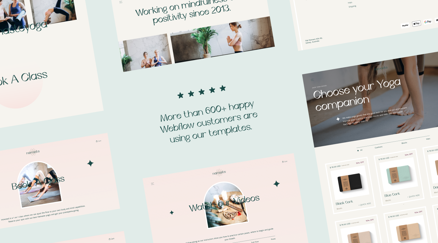 Namaste is the most unique way to showcase your brand online. Gather emails. book in person classes, showcase your free video courses or sell your own products all in one Webflow Ecommerce template.