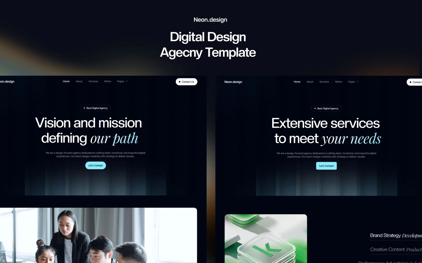 Neon - Webflow template built for design and other digital agencies. This template is perfect for capturing your clients' attention and building trust among them. Our custom-made layouts effectively showcase your works and past projects.
