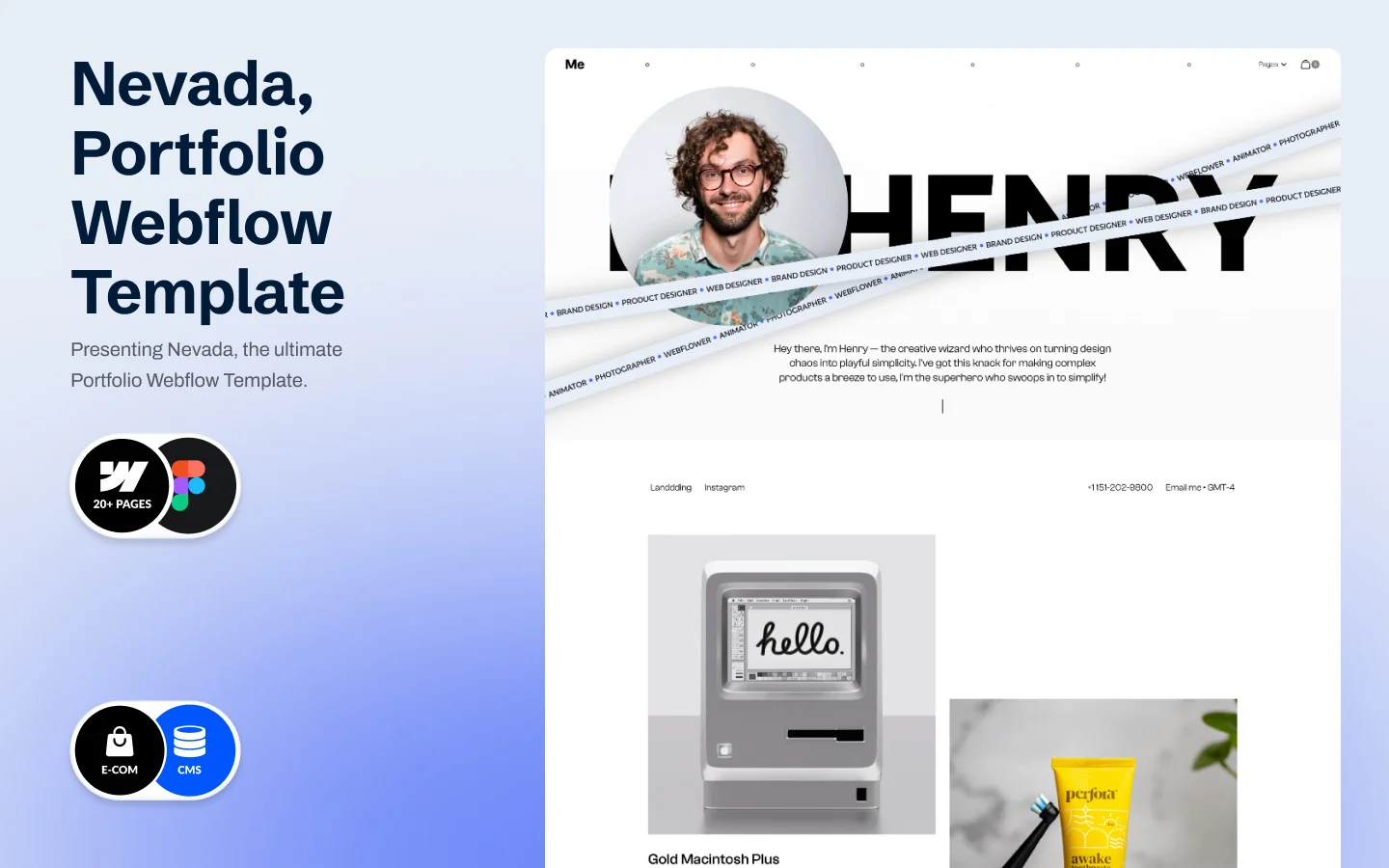Captivate your audience's attention from the very first glance with Nevada's unique hero animation. Welcome your visitors with a seamless scrolling text that adds a touch of dynamism, setting the stage for an engaging exploration of your work.