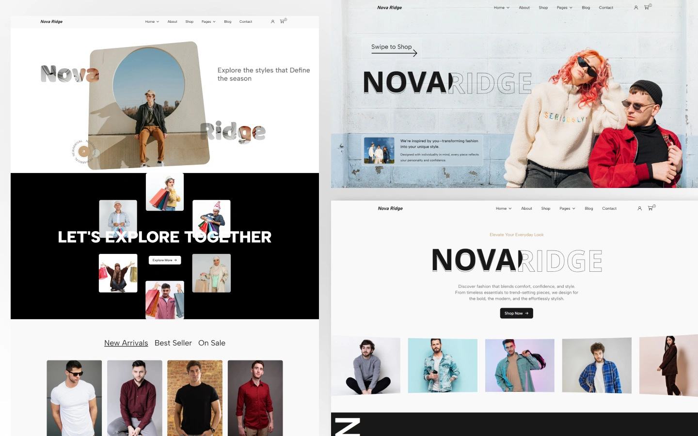 This template includes three unique homepage layouts, each carefully designed to highlight featured products, promotions, and brand messaging in an engaging and structured way. Whether you want a product-focused storefront, brand storytelling layout, or promotional landing experience, Nova Ridge provides flexible options to match your business goals.