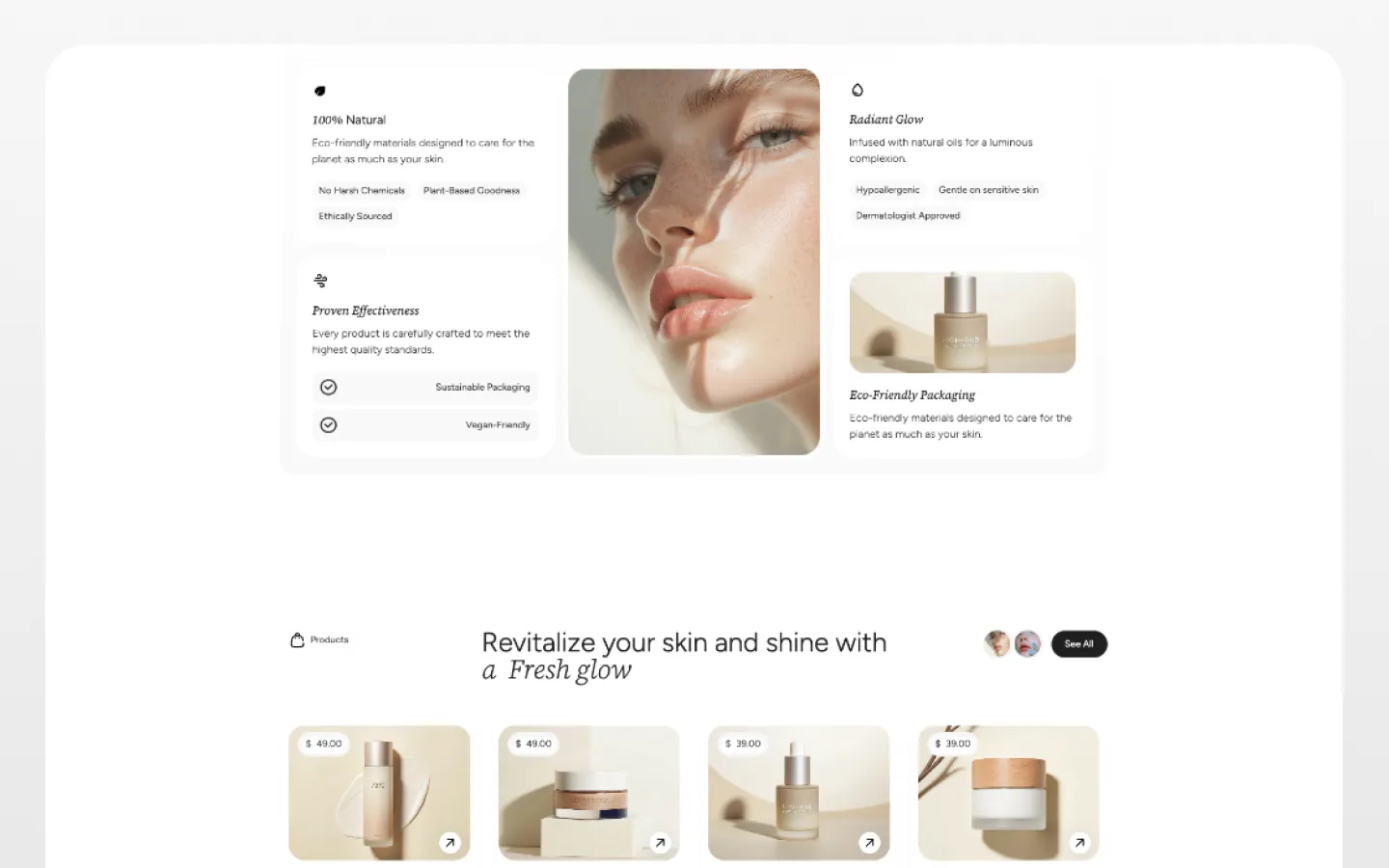 Okare is a Webflow template specially made for beauty, skincare, and cosmetics stores. Whether you're selling makeup, skincare products, wellness items, or natural beauty essentials, Bavia gives you the perfect platform to shine online.