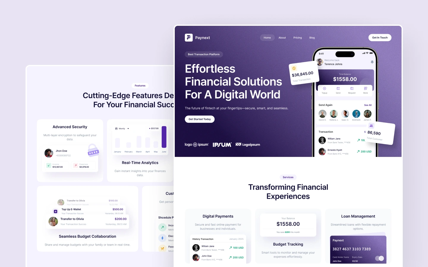 Paynext delivers a refined, tech-forward aesthetic that’s both approachable and powerful—ideal for modern financial platforms.