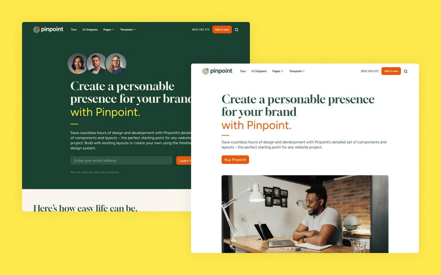 Building further on previous releases, Pinpoint is constructed with the same guiding principles of consistency and re-usability at the core. With Pinpoint, you have full control to use only the provided pages and sections, or assemble your own from the provided components. Sections are logically constructed from predictable grid patterns that are easy to copy and paste between pages or reconfigure to re-use elsewhere in your site. Predictable class names are carefully applied where necessary to ensure a structural consistency you can rely on in the rare event that you may need to build your own sections.