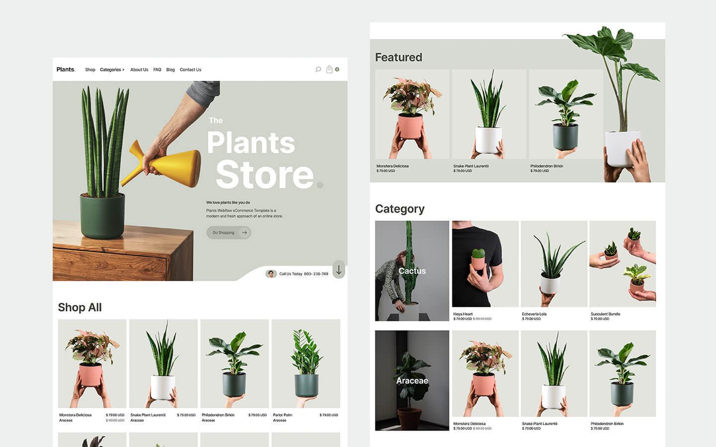 Plants Webflow eCommerce Template is a modern and fresh approach of a Plants online store that you can have in no time, customize it as want and create a unique website for your business.