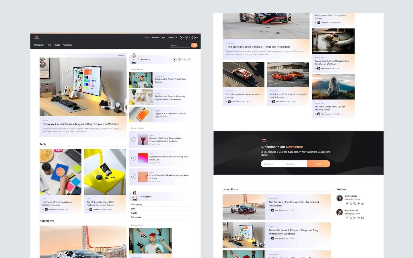 Prensa CMS Blog is more than just a template; it's a complete blogging solution. Designed to cater to a variety of blogging needs, from tech and crypto to photography and beyond, this template empowers you to share your passion with the world. With Prensa CMS Blog, you’re not just creating a blog; you’re building a brand.