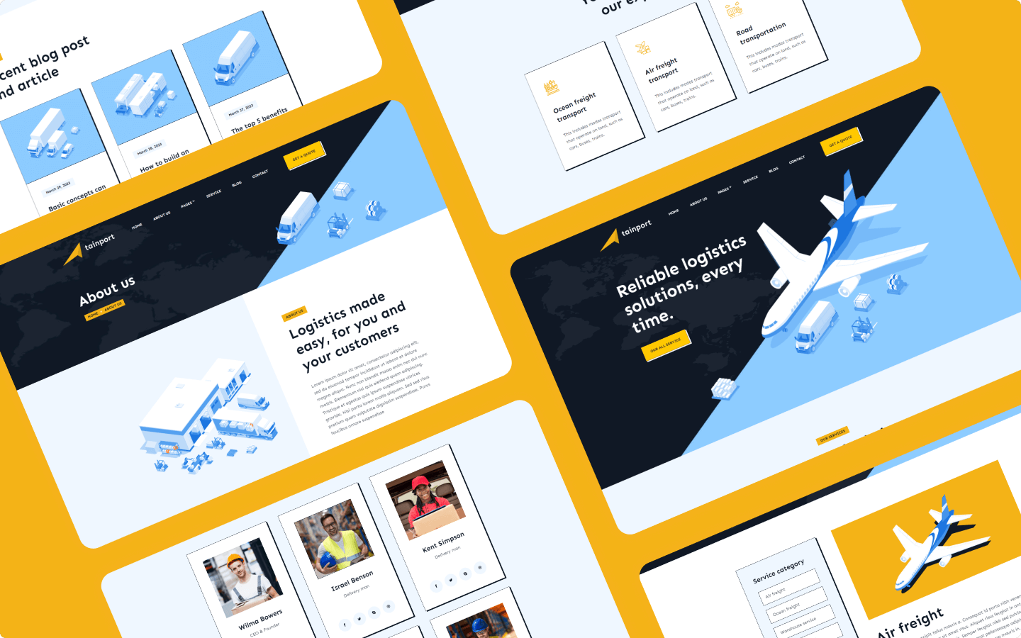 Tainport Transport Webflow Template was designed and built in Webflow with easy edit-ability in mind. Thanks to this, everything was built using re-usable classes, global fonts, global color swatches, and many more best practices, so you can edit the template to fit your brand or design style very easily.