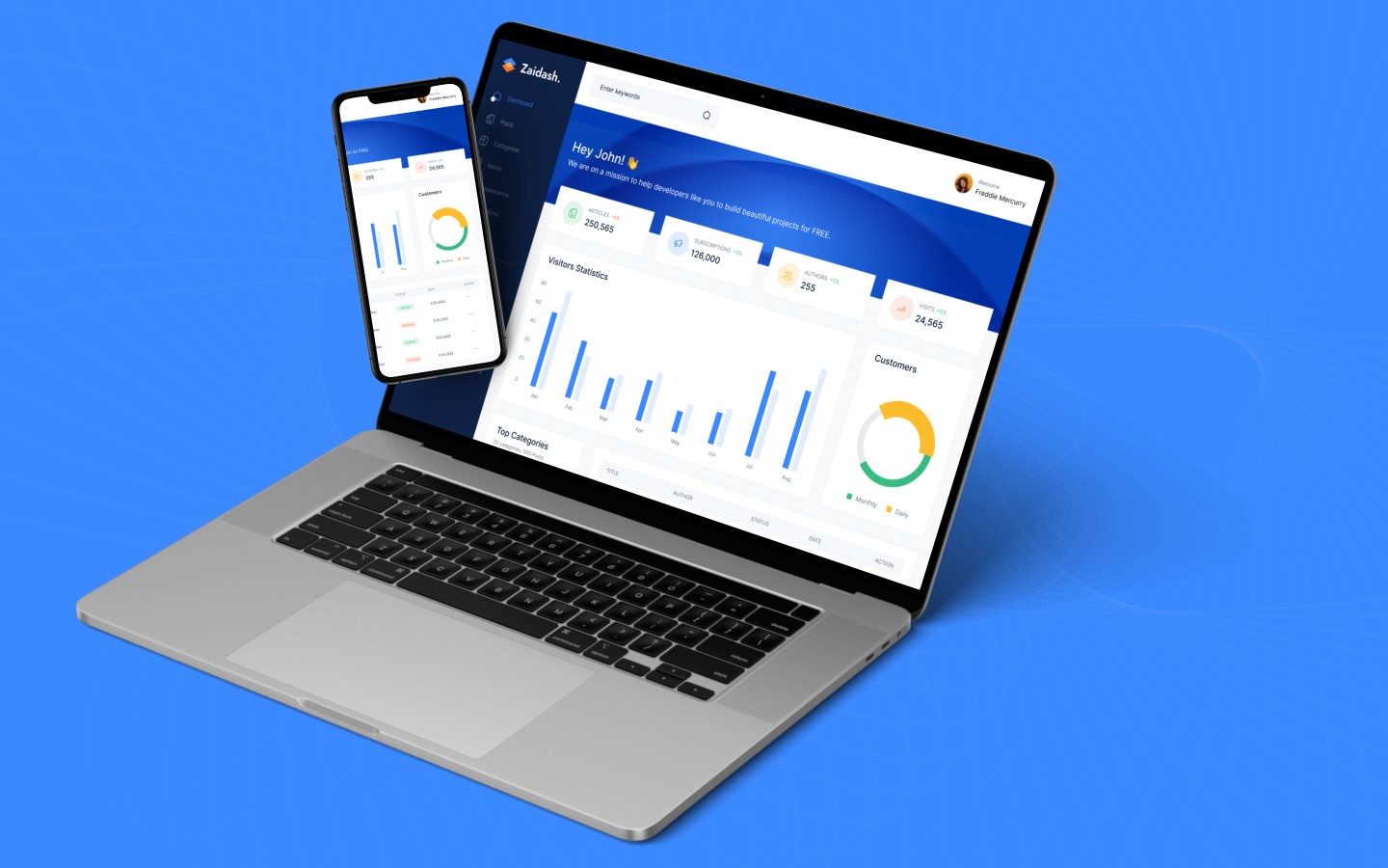 👍 Unique & Premium Design: Zaidash is a really awesome design with a modern interface. The template is suitable for all kinds of business dashboards to gain your customers' trust.