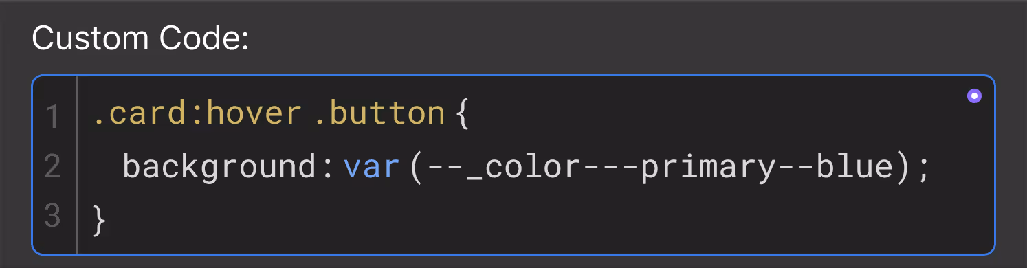 When working with custom code, Webflow variables are available as CSS custom properties — often called “CSS variables” — allowing you to easily extend beyond native styling.